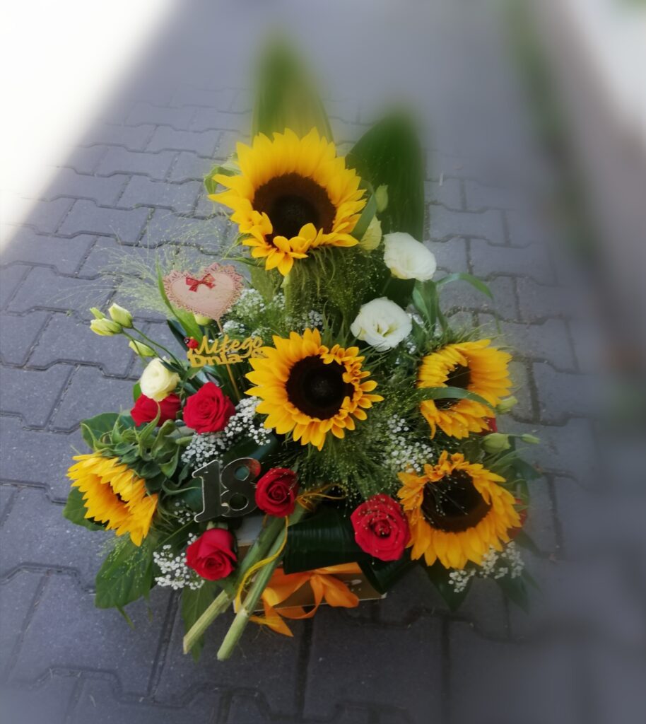 Bukiet okolicznościowy : słoneczniki, eustoma 109