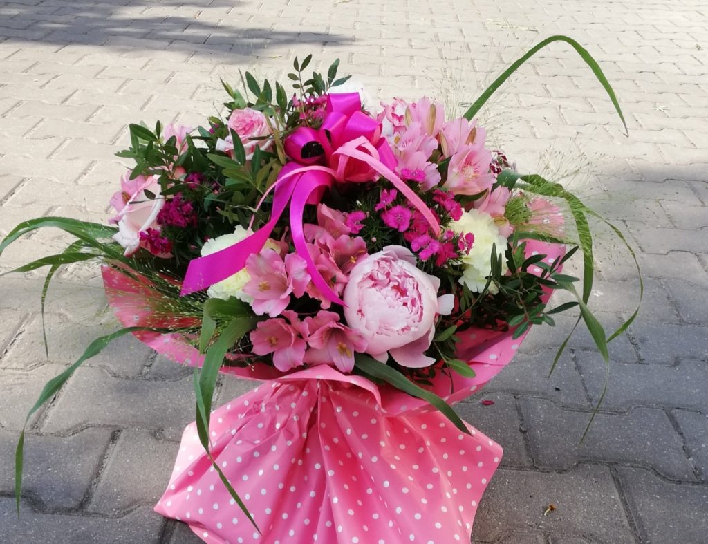 Bukiet różowy z piwoniami ( piwonie dostępne tylko w okolicach maja) 108