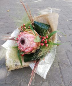 Bukiet Okolicznościowy nr 1 – Margaretka, Gerbery, Alstromeria, Róża + przybranie
