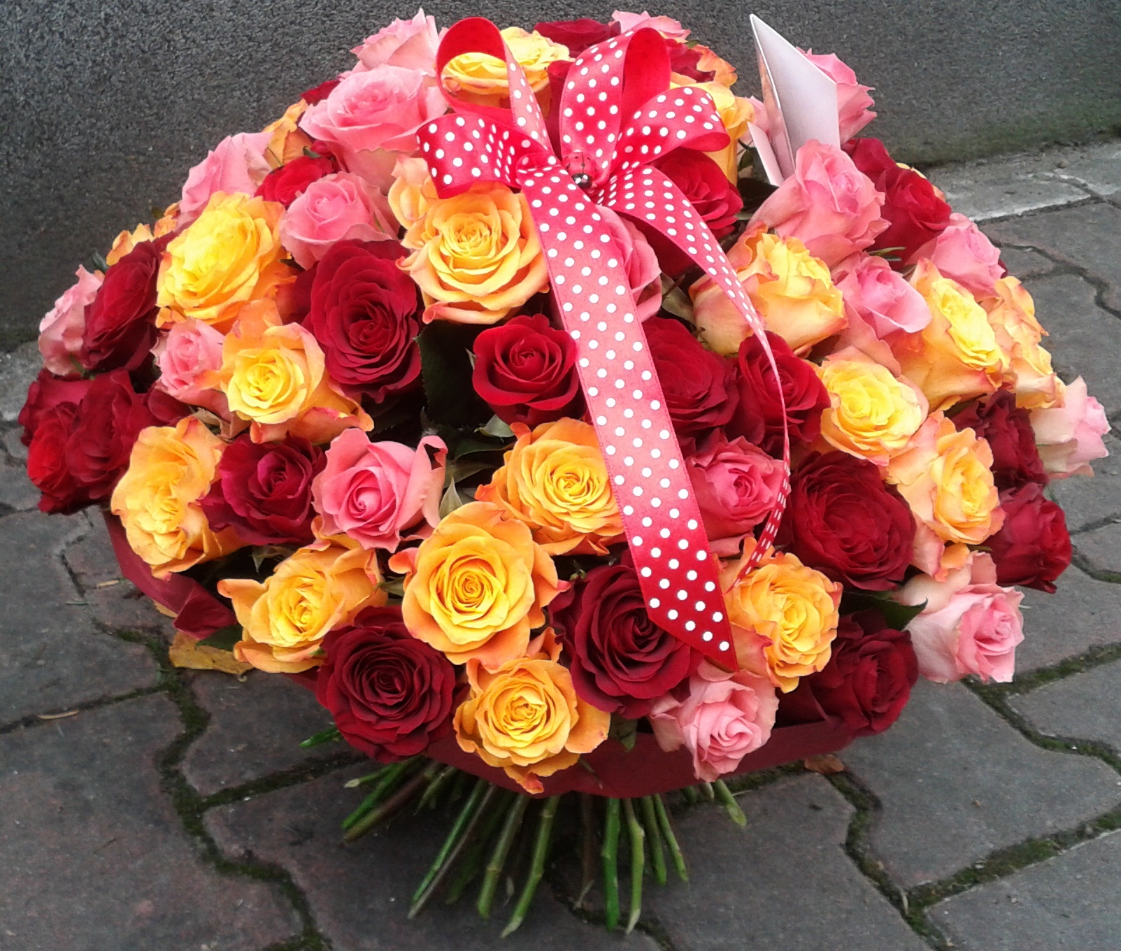 Bukiet Okolicznościowy nr 4- MIX Róż Kolorowych, w ciepłych odcieniach