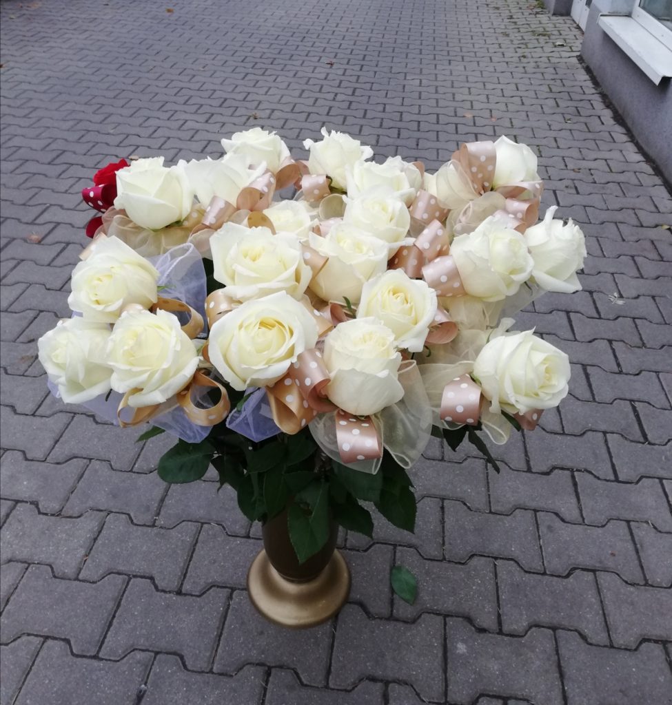 Bukiet Okolicznościowy nr 11( bukiet wystopniowany z róż herbacianych + przybranie)